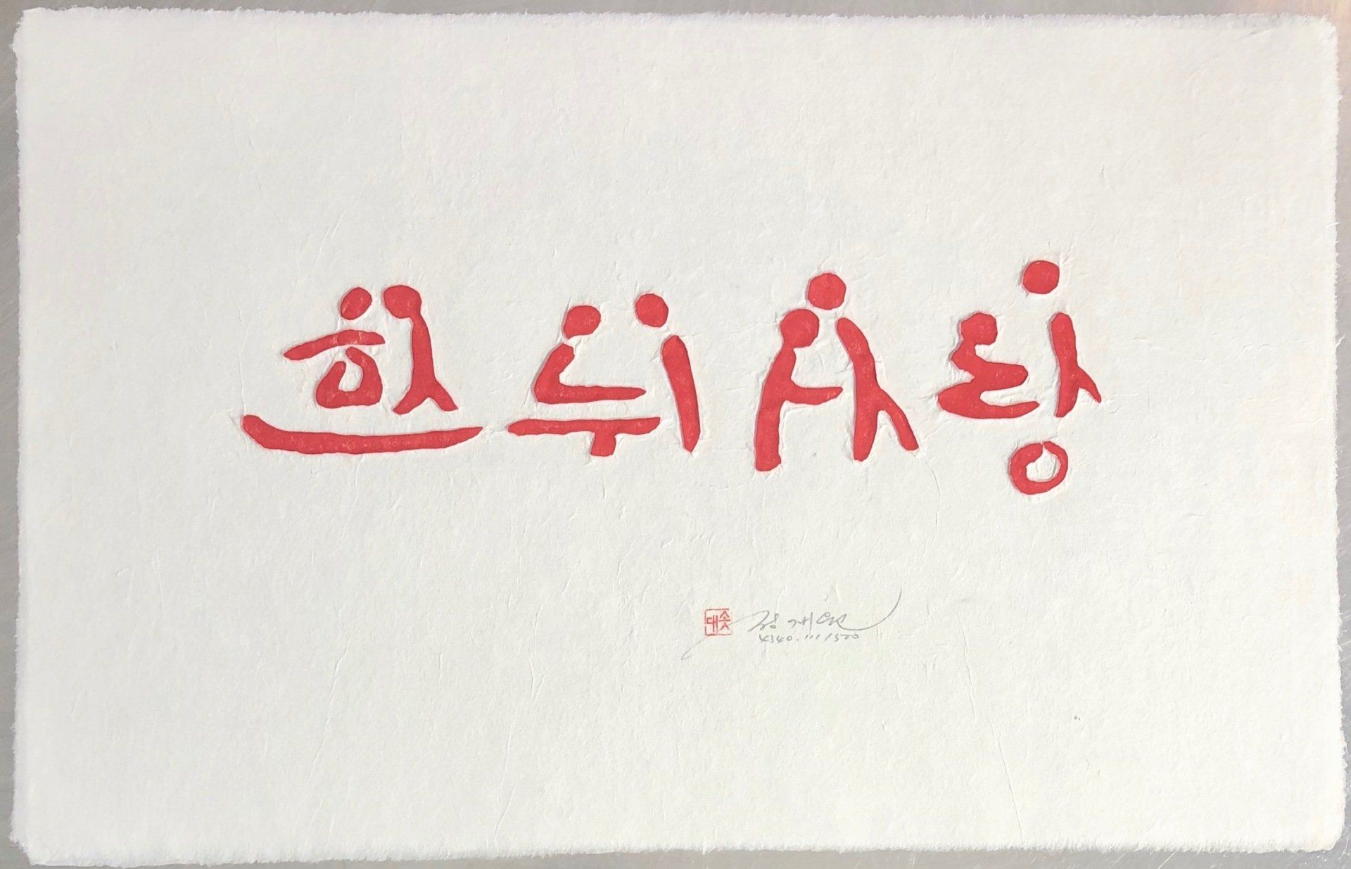 Die koreanischen Schrifzeichen zeigen jeweils ein Liebespaar. Die Aussprache ist 'han-nui-sa-ran', das bedeutet 'Ewige Liebe'.