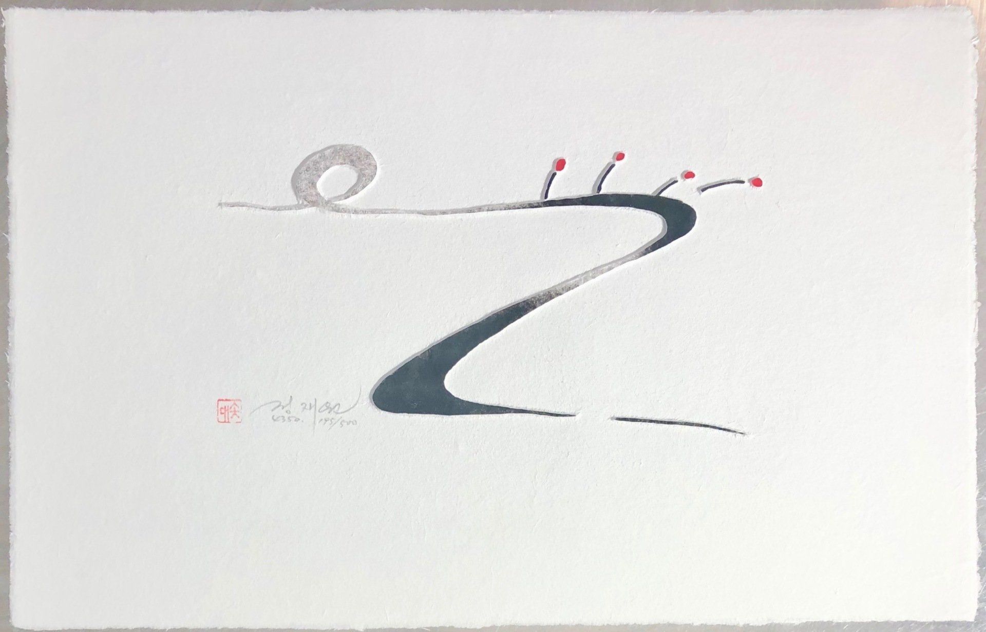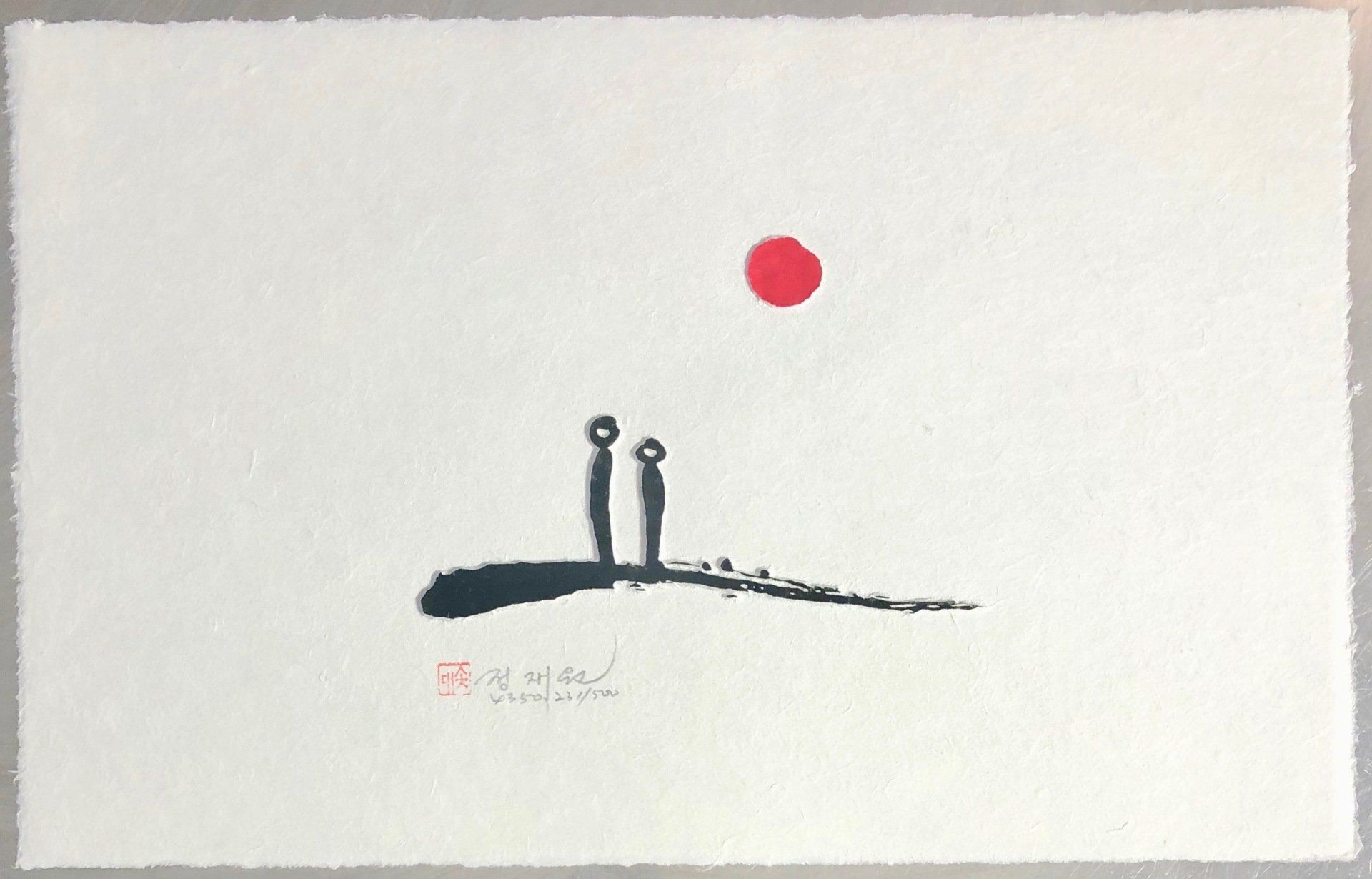 Dieser Takbon ist von kalligrafischen Arbeiten abgeleitet. Die Sonne scheint, das Paar trifft sich und unterhält sich freundlich.