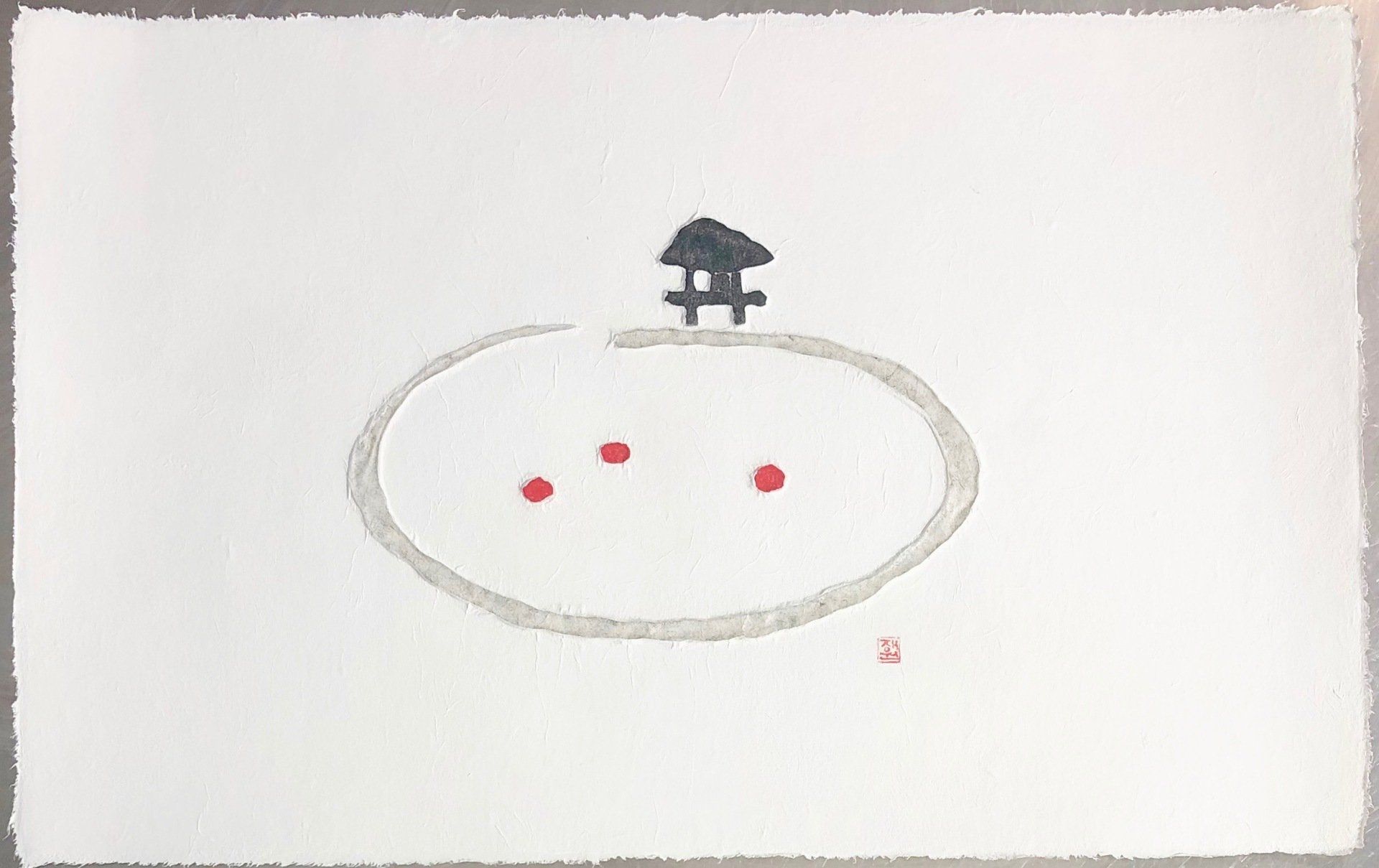 Die nahen Berge erscheinen klar im Moondlicht, die entfernten etwas verschwommen. Dieser Takbon ist von kalligrafischen Arbeiten abgeleitet.