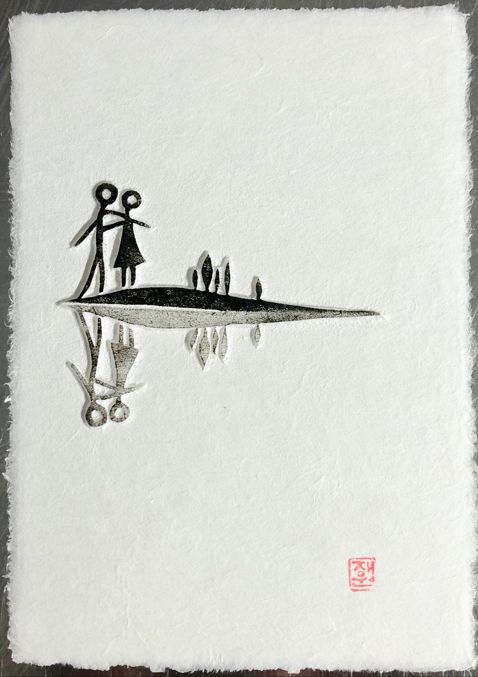 Dieser Takbon ist von kalligrafischen Arbeiten abgeleitet. Die Sonne scheint, das Paar trifft sich und unterhält sich freundlich.